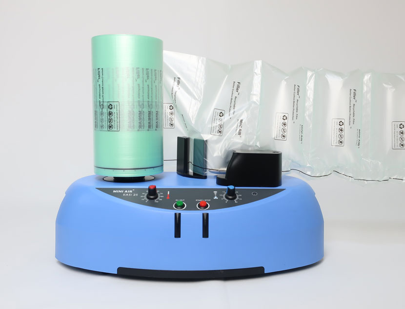 機械本体は軽量・最小・静音、コンパクトで省スペース、場所を選ばず収納できます。操作方法もとてもシンプルでわかりやすくなりました。梱包する商品の形状に合わせて、各種サイズのエアー緩衝材を製造できます。